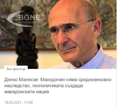 Η Βόρεια Μακεδονία δεν έχει μεσαιωνική κληρονομιά, το ‘μακεδονικό’ έθνος δημιούργησε η γεωπολιτική, έγραψε σήμερα ο πρώτος υπουργός Εξωτερικών της Βόρειας Μακεδονίας, Ντένκο Μαλέσκι σε συνέντευξή του στην οποία αναφέρθηκε σε πολύ σημαντικά πράγματα για τις σχέσεις της χώρας του με τη Βουλγαρία.