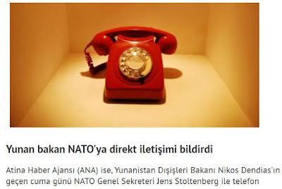 Επιπλέον, - συνεχίζει το δημοσίευμα- το πρακτορείο ειδήσεων των Αθηνών (ANA) δήλωσε ότι ο Έλληνας υπουργός Εξωτερικών Νίκος Δένδιας συζήτησε επίσης το ζήτημα της «γραμμής άμεσης επικοινωνίας με τα επιχειρησιακά τμήματα» σε τηλεφωνική κλήση με τον Γενικό Γραμματέα του ΝΑΤΟ Γενς Στόλτενμπεργκ την περασμένη Παρασκευή.