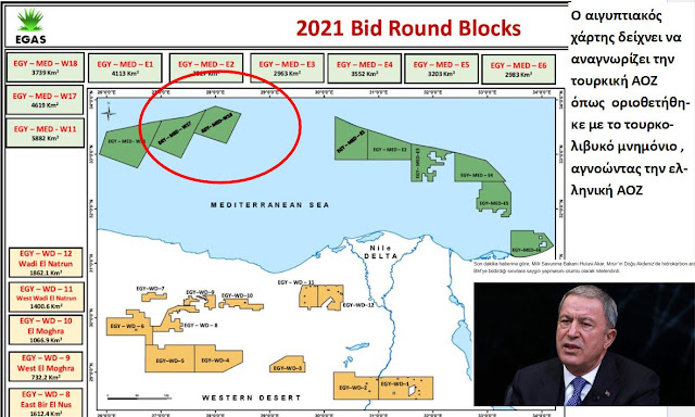 Τόνισε ότι ο χάρτης που δημοσίευσε η Αίγυπτος ‘σέβεται την τουρκική ΑΟΖ όπως αυτή κατατέθηκε στον ΟΗΕ’, δηλαδή, αποδέχεται την τουρκική ΑΟΖ όπως την επιδιώκει η Τουρκία, που συνορεύει με τη λιβυκή ΑΟΖ...