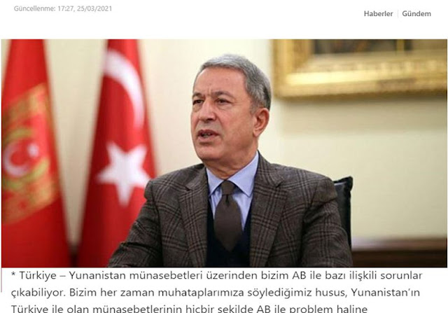 Ο υπουργός Άμυνας της Τουρκίας, απάντησε χαρακτηριστικά: