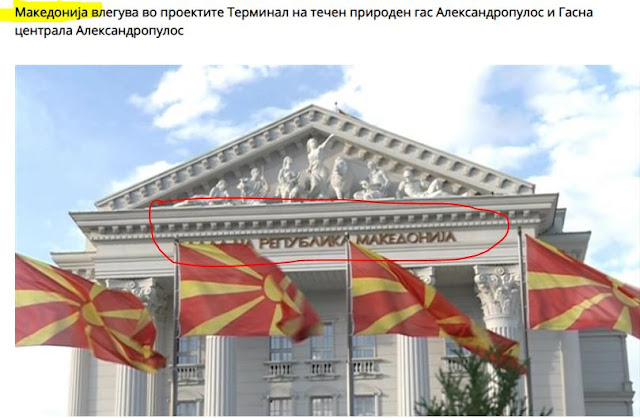 Μάλιστα, φιλοξενούν και φωτογραφίες δημόσιων κτηρίων με επιγραφές του παρελθόντος όπου αναγράφεται κάτω από την ονομασία του θεσμού «Δημοκρατία της Μακεδονίας», ενώ σήμερα αυτές δεν υπάρχουν αφού έχουν αντικατασταθεί με το «Δημοκρατία της Βόρειας Μακεδονίας». Εντυπωσιακή αυτή η αδιέξοδη επιμονή των Σλαβομακεδόνων.