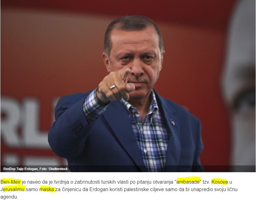 Ο Ben-Meir εξέφρασε τη θέση ότι οι λεγόμενες «ανησυχίες» των τουρκικών αρχών σχετικά με την πρεσβεία του Κοσσυφοπεδίου στην Ιερουσαλήμ, είναι απλώς μια μάσκα για να κρύψει τις επιδιώξεις του με τη χρησιμοποίηση των Παλαιστινίων, προωθώντας την προσωπική του ατζέντα.