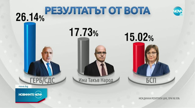 Ο συνασπισμός GERB-UDF έλαβε το 8,66% των ψήφων και είναι στην 4η θέση.