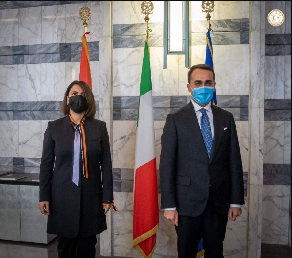 Η υπουργός Εξωτερικών της Λιβύης Νάζλα αλ Μανγκούς με τον Ιταλό ομόλογό της Λουϊτζι ντι Μάιο στη Ρώμη- Φωτό Libya Review
