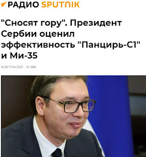 Ο Πρόεδρος της Σερβίας Αλεξάνταρ Βούτσιτς εξήρε την αποτελεσματικότητα του στρατού και της αστυνομίας, καθώς οι δύο θεσμοί είναι εξοπλισμένοι με ρωσικά πυραυλικά συστήματα Pantsir-S1 και ελικόπτερα Mi-35, όπως σημειώνει ρωσικό δημοσίευμα.
