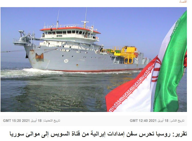 "Η Ρωσία συνοδεύει ιρανικά εφοδιαστικά πλοία από το κανάλι του Σουέζ στα λιμάνια της Συρίας", γράφει το δημοσίευμα