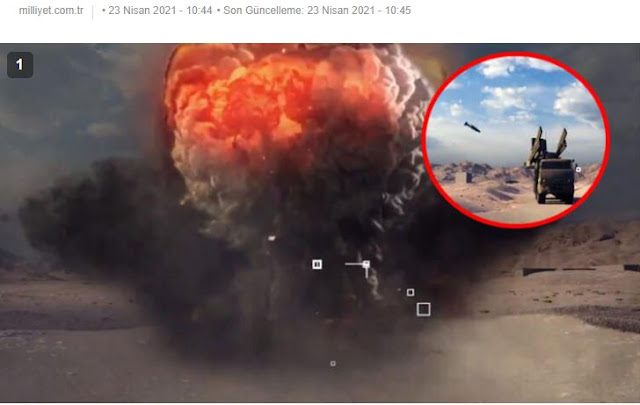 «Ο τουρκικός στρατός δημοσίευσε βίντεο που έδειχνε την καταστροφή δύο μονάδων ρωσικού στρατιωτικού εξοπλισμού από το τελευταίο επιθετικό drone Akinci που χρησιμοποίησε τα λεγόμενα Μίνι Έξυπνα Πυρομαχικά (Mini Akilli Mühimmat - MAM-T)».