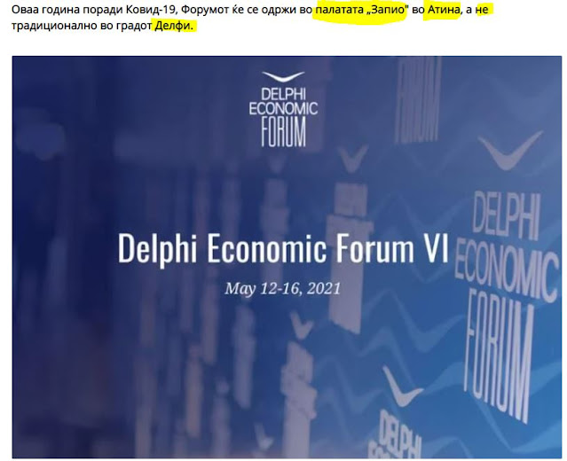 Στη σημερινή συνέντευξη Τύπου όπου παρουσιάστηκε το πρόγραμμα και ανακοινώθηκαν λεπτομέρειες, ο πρόεδρος του Οικονομικού Φόρουμ των Δελφών, Συμεών Τσομώκος, απαντώντας στην ερώτηση του ανταποκριτή της MIA από την Αθήνα, επιβεβαίωσε ότι ο Ζάεφ και ο Ντιμίτροφ θα βρίσκονται στην Αθήνα και αποκάλυψε ότι έχει σχεδιαστεί να διοργανωθεί μια εκδήλωση στα τέλη Ιουνίου στα Σκόπια.