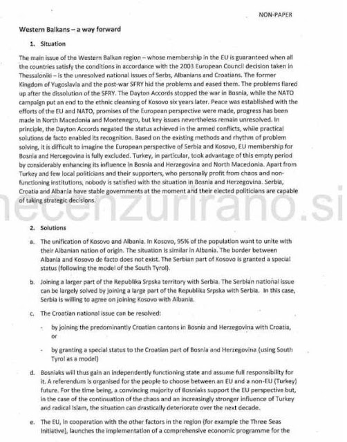 Ο ιστότοπος της σλοβενικής έκδοσης «Necenazurirano» αναφέρει ότι στάλθηκε στις Βρυξέλλες ένα «non Paper» από τον Γιάνεζ Γιάνσα, πρωθυπουργό της Σλοβενίας.