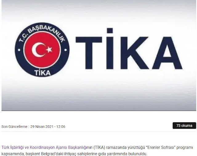 Επισιτιστική βοήθεια δόθηκε σε όσους έχουν ανάγκη στην πρωτεύουσα Βελιγράδι, στο πλαίσιο του προγράμματος «Erenler Sofrası» που πραγματοποιήθηκε από την Τουρκική Υπηρεσία Συνεργασίας και Συντονισμού (TİKA) στη διάρκεια του Ραμαζανιού.