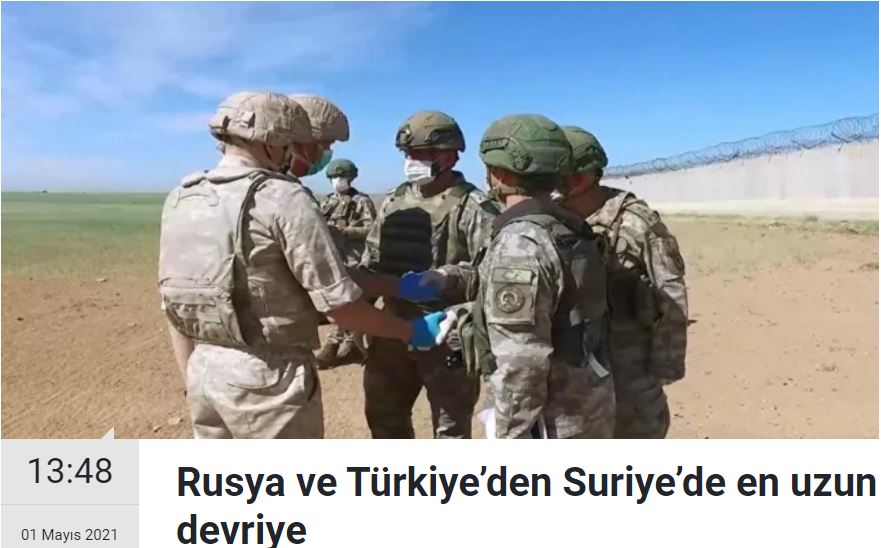 Ρώσοι και Τούρκοι στρατιώτες πραγματοποίησαν αποστολή κοινής περιπολίας της πιο μεγάλης απόστασης στη Συρία.