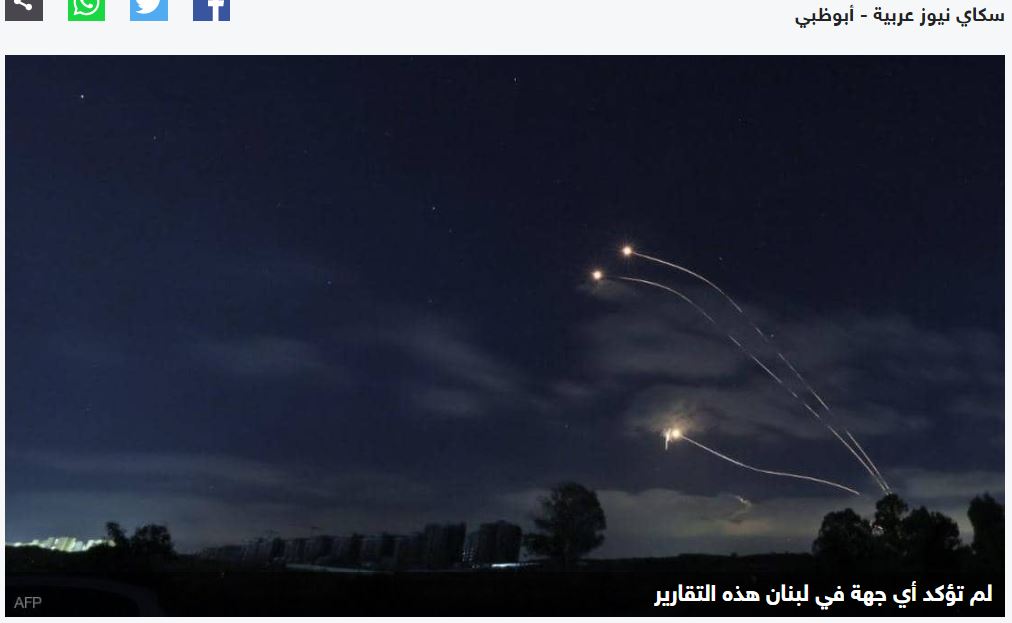 Το ισραηλινό κανάλι 13 ανέφερε ότι ένας πύραυλος εκτοξεύθηκε με στόχο το Ισραήλ, γεγονός που δείχνει ότι προερχόταν από τον Λίβανο.