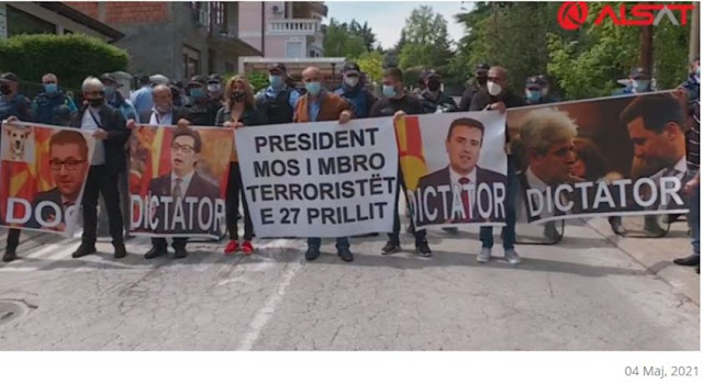 Διαμαρτυρήθηκε διοργανώθηκε σήμερα μπροστά από την κατοικία του προέδρου της Βόρειας Μακεδονίας, Στέβο Πενταρόφσκι, κατά την οποία οι διαμαρτυρόμενοι φώναζαν συνθήματα κατά των δηλώσεων περί επιείκειας για τους καταδίκους των γεγονότων της «27ης Απριλίου».