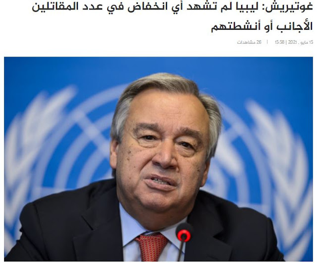 «Γκουτέρες: Η Λιβύη δεν έχει δει καμία μείωση στον αριθμό ή τις δραστηριότητες ξένων μαχητών», γράφει το λιβυκό δημοσίευμα