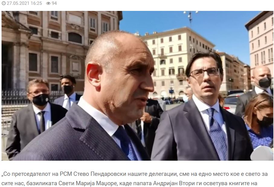 «Με τον Πρόεδρο της Δημοκρατίας της Βόρειας Μακεδονίας- ΔΒΜ, Στέβο Πενταρόφσκι, οι αντιπροσωπείες μας βρίσκονται σε ένα μέρος που είναι ιερό για όλους μας, τη Βασιλική της Αγίας Μαρίας Ματζόρε (Ρώμη), όπου ο Πάπας Ανδριανός Β’ αφιέρωσε τα βιβλία των αγίων αδελφών Κυρίλλου και Μεθοδίου.