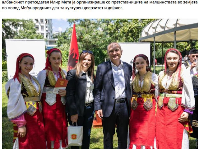 Σε συνάντηση που διοργάνωσε ο πρόεδρος της Αλβανίας με τους εκπροσώπους των μειονοτήτων στη χώρα με την ευκαιρία της Διεθνούς Ημέρας για την Πολιτιστική Ποικιλομορφία και Διάλογο, συμμετείχε αντιπροσωπεία του συλλόγου των Σλαβομακεδόνων «Ίλιντεν», όπως σημειώνει δημοσίευμα των Σκοπίων.