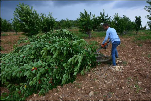 Ο Ισμαήλ Ατζιά, ο οποίος καλλιεργεί κεράσια εδώ και πολλά χρόνια, δήλωσε ότι δεν μπορούσε να πουλήσει κεράσια για 2 λίρες ανά κιλό φέτος και να μειώσει 1.500 κερασιές στη γη του.