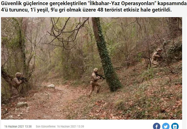 Οι τουρκικές δυνάμεις ασφαλείας ανακοίνωσαν ότι στο πλαίσιο της επιχείρησης «Άνοιξη Καλοκαίρι» εξουδετερώθηκαν 48 Κούρδοι αυτονομιστές, οι οποίοι αναφέρονται ως ‘τρομοκράτες’.