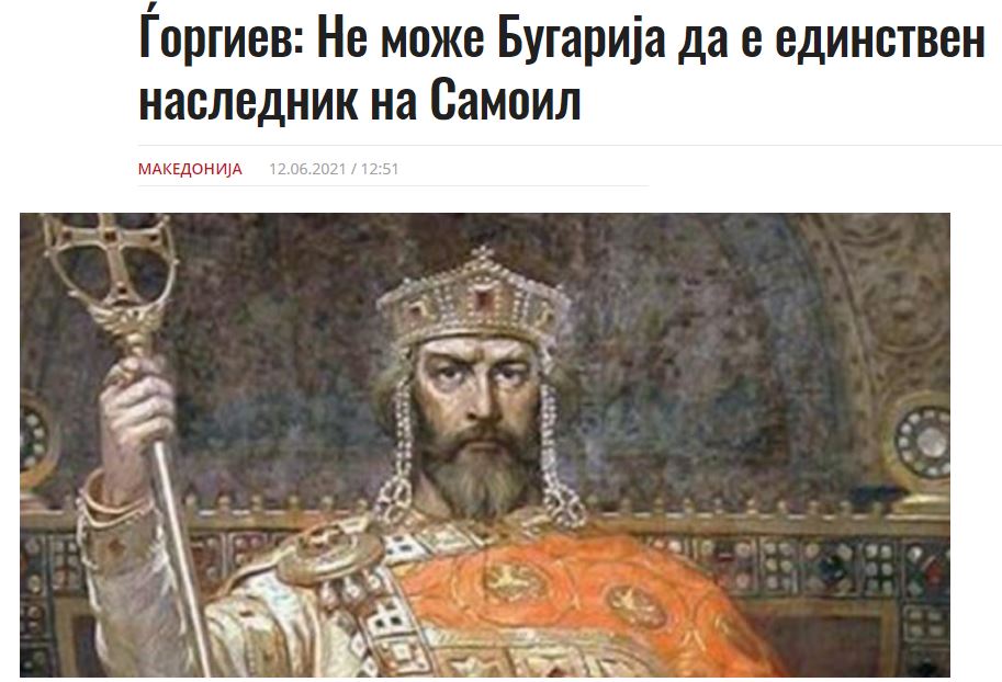 «Η συζήτηση αφορά τον Μεσαίωνα, δηλαδή την αποτύπωση του κράτους του Τσάρου Σαμουήλ στα σχολικά βιβλία της Βόρειας Μακεδονίας. Μέχρι στιγμής έχουμε καταλήξει σε συμφωνία για κοινή γιορτή του Τσάρου, αλλά το δεύτερο τμήμα είναι το περιεχόμενο των σχολικών βιβλίων. Δεν μπορούμε να δεχτούμε να παρουσιάσουμε αυτήν τη χώρα (Βουλγαρία) ως τον μοναδικό και άμεσο διάδοχο της Βουλγαρικής Αυτοκρατορίας», είπε ο Γκιοργκίεφ.
