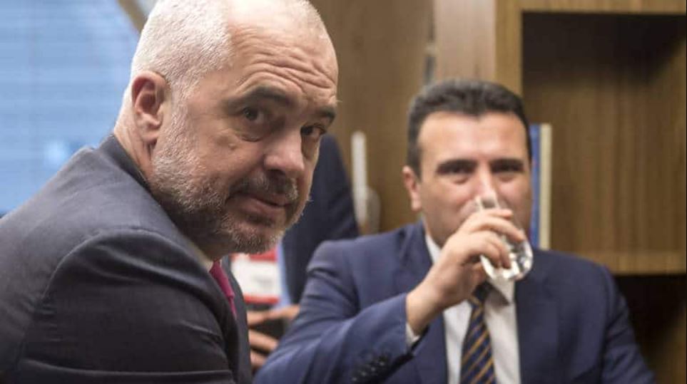 Είπα στον Ζόραν Ζάεφ ότι ελπίζω ότι δεν θα θέλουν να σας αποκαλέσουν Δυτική Βουλγαρία, γιατί τότε θα πρέπει να διαπραγματευτείτε ξανά με τους Έλληνες...", είπε ο πρωθυπουργός της Αλβανίας Έντι Ράμα σε κοινή συνέντευξη Τύπου με τον ομόλογό του από τη Βόρεια Μακεδονία, Ζόραν Ζάεφ, στα Σκόπια.