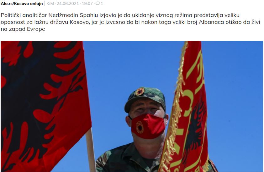 Ο πολιτικός αναλυτής Νετζμεντίν Σπαχίου αναφέρει ότι η άρση του καθεστώτος θεωρήσεων αποτελεί μεγάλο κίνδυνο για το Κοσσυφοπέδιο, καθώς είναι βέβαιο ότι μεγάλος αριθμός Αλβανών θα πήγαιναν να ζήσουν στη Δυτική Ευρώπη, γράφει η σερβική «Alo!».
