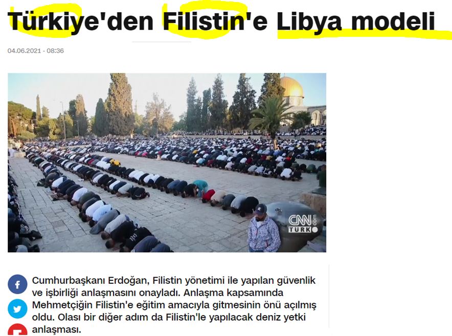 Η Άγκυρα έχει κάνει το πρώτο βήμα για την εκ νέου εφαρμογή του μοντέλου της Λιβύης με τους Παλαιστινίους σχετικά με μια συμφωνία συνεργασίας για την ασφάλεια που υπογράφηκε από την Τουρκία και την Παλαιστινιακή Αρχή (ΠΑ) που τέθηκε πρόσφατα σε ισχύ.