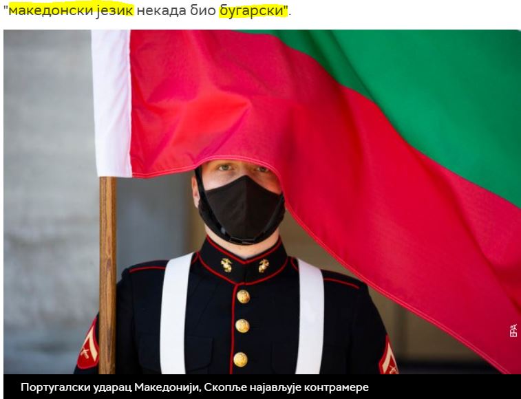 Η Βουλγαρία δηλώνει επίσης ότι «η μακεδονική γλώσσα προήλθε το 1944» και ότι μπορεί να μετρηθεί μόνο ως «γραπτή περιφερειακή μορφή της βουλγαρικής γλώσσας», όπως σημειώνει η σερβική ραδιοτηλεόραση.