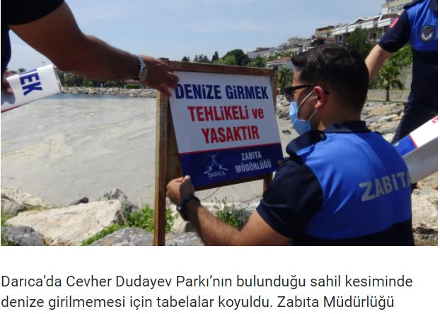 Καθώς οι παραλίες στην περιοχή της Αρετσού στην επαρχία Κοτσάελι καλύφθηκαν με τη θαλάσσια βλέννα, απαγορεύτηκε η κολύμβηση στην παραλία Τζεβχέρ Ντουντάγιεφ.