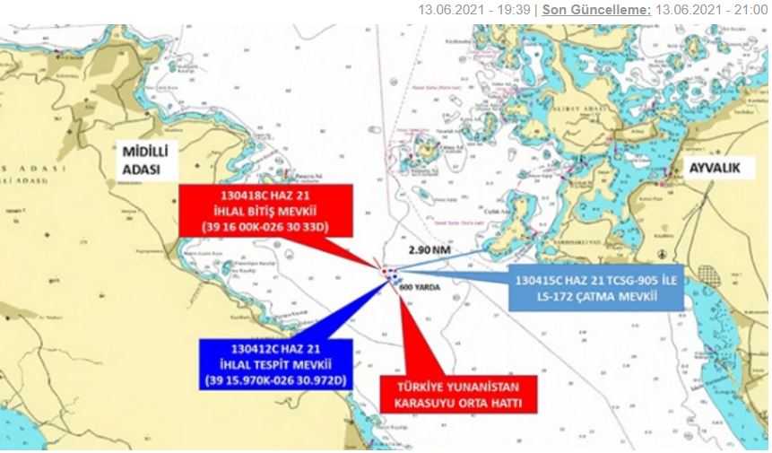 Υπήρχαν τεταμένες στιγμές ανοικτά από το στο Αϊβαλί (Κυδωνιές) της επαρχίας Μπαλικεσίρ. Οι ομάδες της (τουρκικής) Ακτοφυλακής μας κυνήγησαν σκάφος της ελληνικής ακτοφυλακής που είχε παραβιάσει τα τουρκικά χωρικά ύδατα, γράφει Τούρκιγιε Γκαζέτεσι.