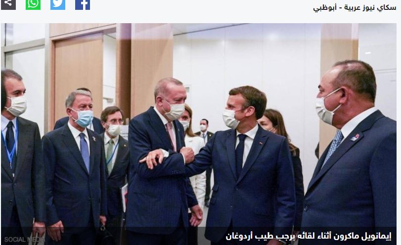 Ο Εμμανουέλ Μακρόν με τον Ρετζέπ Ταγίπ Ερντογάν (Sky News Arabia)