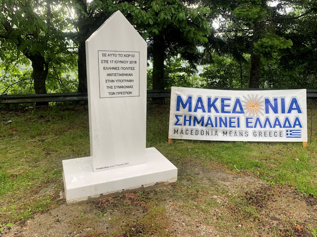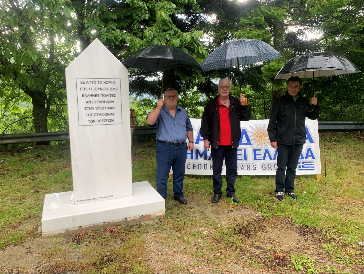 Μπροστά στο μαρμάρινο μνημείο που έχει ανεγερθεί στον χώρο σε ανάμνηση των γεγονότων της 17ης Ιουνίου 2018, και κάτω από έντονη βροχή, διαβάσθηκε κείμενο το οποίο μεταξύ των άλλων αναφέρει:
