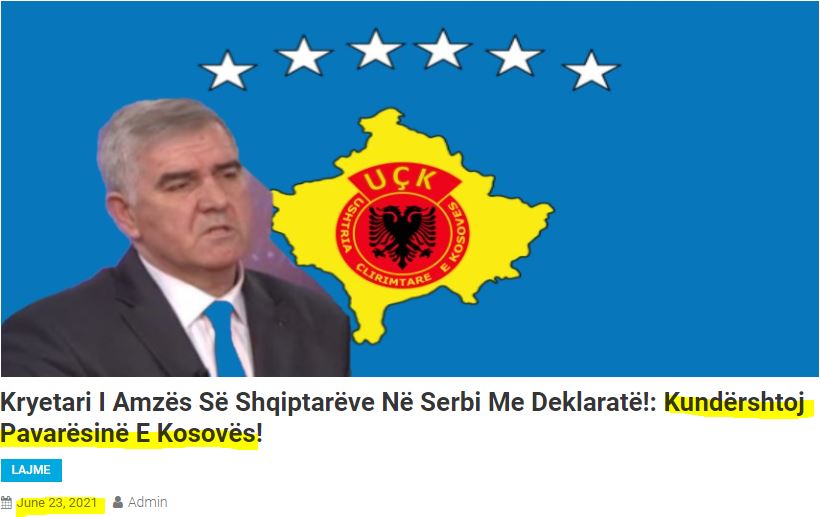 Ο πρόεδρος της κοινότητας των Αλβανών της Σερβίας, Ντέμο Μπερίσα, αντιτίθεται στην αναγνώριση της ανεξαρτησίας του Κοσσυφοπεδίου και χαρακτηρίζει τον UCK ως τρομοκρατική οργάνωση, ενώ η επέμβαση του ΝΑΤΟ είναι μια επίθεση κατά της Σερβίας.