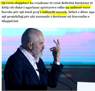 Μετά την ξαφνική επίσκεψη του Αλβανού πρωθυπουργού στην Τουρκία στις 2 Ιουνίου και την απόφαση που ανακοινώθηκε από τον ίδιο τον Έντι Ράμα για προμήθεια drone από την Τουρκία, η αλβανική κυβέρνηση αποφάσισε να αυξήσει τον προϋπολογισμό για το 2021 και να επιβαρύνει το δημοσιονομικό έλλειμμα χρεώνοντας στους πολίτες άλλα 92 εκατομμύρια στο σύνολο του 1 δισεκατομμυρίου ευρώ, σύμφωνα με σχέδιο νόμου για κανονιστική πράξη που υποβλήθηκε στο αλβανικό κοινοβούλιο.