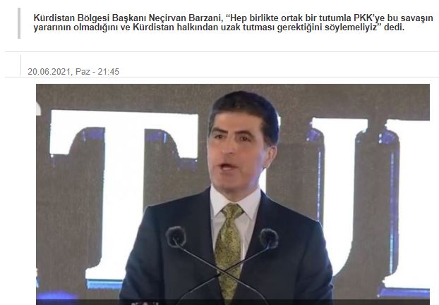 «Πρέπει όλοι μαζί, με κοινή στάση, να πούμε στο ΡΚΚ ότι αυτός ο πόλεμος δεν είναι επωφελής και ότι πρέπει να τον κρατήσει μακριά από τον λαό του Κουρδιστάν», είπε χαρακτηριστικά.