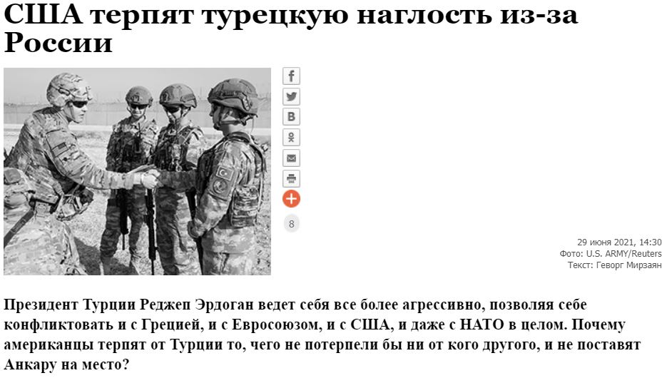 Γιατί οι Αμερικανοί ανέχονται από την Τουρκία αυτό που δεν θα ανέχονταν από κανέναν άλλο και δεν βάζουν την Άγκυρα στη θέση της;», γράφει η ρωσική εφημερίδα Взгляд (vzglyad).