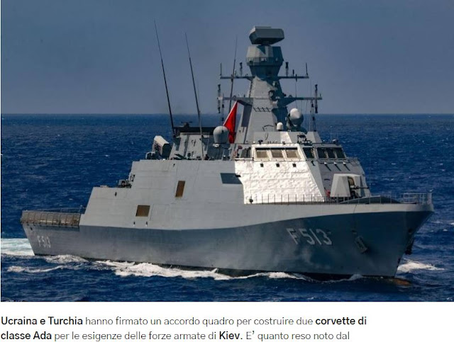 Η Ουκρανία και η Τουρκία υπέγραψαν μια συμφωνία-πλαίσιο για την κατασκευή δύο κορβέτων κατηγορίας Ada για τις ανάγκες των ενόπλων δυνάμεων του Κιέβου.