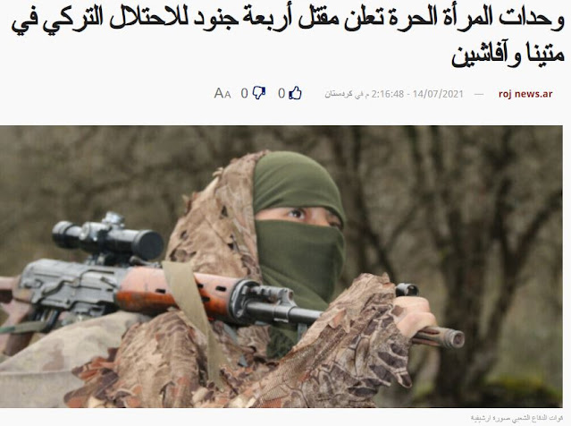Οι Κούρδισσες μαχήτριες των Μονάδων «Ελεύθερων Γυναικών -Αστέρι» πραγματοποίησαν μια ποιοτική επιχείρηση εναντίον του τουρκικού στρατού κατοχής στο βόρειο Ιράκ, στις περιοχές Αβασίν και Μετίνα, στην επέτειο των μαρτύρων της 14ης Ιουλίου.