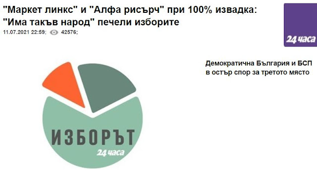 Το κόμμα του Μπόικο Μπορίσοφ GERB έρχεται δεύτερο με 22,7%, σύμφωνα με την Market Links και στο 23,4% με την Alpha Research, η Δημοκρατική Βουλγαρία βρίσκεται στο 13,4% και 12,8% και το Βουλγαρικό Σοσιαλιστικό Κόμμα -BDP στο 12,8% και 13,1%.