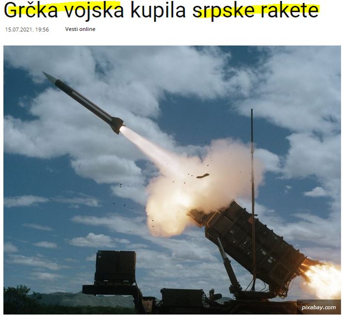 Η σερβική εταιρεία "Edepro" πούλησε ρουκέτες στον ελληνικό στρατό στην έκθεση όπλων και στρατιωτικού εξοπλισμού στην Αθήνα «DEFEA 2021», σημειώνει η σερβική Vesti Online.