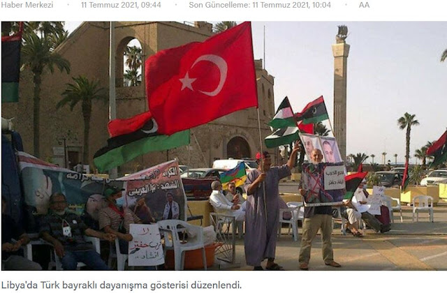 Στις 5 Ιουλίου στην πόλη Τομπρούκ, στη διάρκεια της συνόδου για τον προϋπολογισμό της χώρας στο προσωρινό κτήριο της Βουλής των Αντιπροσώπων, διαμαρτυρόμενοι κατά της Τουρκίας και των επεμβάσεων στη χώρα, έστρωσαν τουρκικές σημαίες στο δρόμο για να ποδοπατηθούν καθώς θα περνούσε η συνοδεία του πρωθυπουργού της Λιβύης, Αμπντουλχαμίντ Νταμπάιμπα για να πάει στην προγραμματισμένη σύνοδο.
