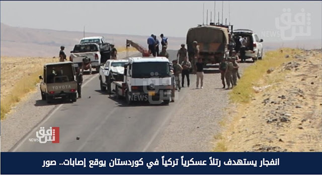 Πηγή ασφαλείας δήλωσε το Σάββατο ότι αυτοσχέδιος εκρηκτικός μηχανισμός που στόχευσε ένα τουρκικό στρατιωτικό κομβόι στην περιοχή Ζιλκάν (στην επαρχία Νινευή) της περιοχής του Κουρδιστάν, προκάλεσε τραυματισμούς μεταξύ των μελών της συνοδείας και ενός οχήματος περιπολίας.