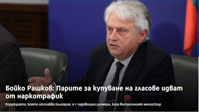 «Τα χρήματα που χρησιμοποιήθηκαν για την αγορά ψήφων προέρχονται από το λαθρεμπόριο ναρκωτικών και άλλες εγκληματικές δραστηριότητες. Οι επιχειρηματίες που θέλουν να εκλεγεί η προηγούμενη κυβέρνηση μπορούν επίσης να αποτελούν πηγή (χρημάτων). Αυτό δήλωσε ο υπουργός Εσωτερικών της υπηρεσιακή κυβέρνησης, Μπόικο Ρασκόφ, στην εκπομπή ‘πρόσωπο με πρόσωπο’ στη βουλγαρική εθνική τηλεόραση.