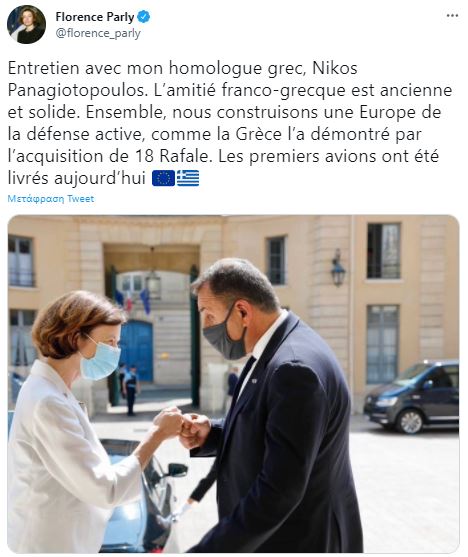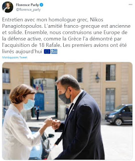 «Μετά το Mirage F1 το 1974, το Mirage 2000 το 1985 και το Mirage 2000-5 το 2000, το Rafale θα πετάει με περηφάνια με τα χρώματα της Ελληνικής Πολεμικής Αεροπορίας.