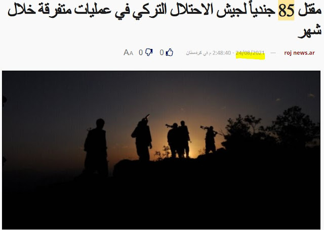Το Κέντρο Ενημέρωσης των Λαϊκών Αμυντικών Δυνάμεων (HPG) ανακοίνωσε τον αριθμό των νεκρών από την τουρκική κατοχή κατά τον τελευταίο μήνα των δύο επαναστατικών εκστρατειών αντίστασης εναντίον του Χαμπούρ και των Γερακών του Ζάγκρου, στις οποίες σκοτώθηκαν 85 Τούρκοι στρατιώτες και τραυματίστηκαν 19 άλλοι, ενώ επτά μαχητές των δυνάμεων ανταρτών που συμμετείχαν σε αυτές τις δύο εκστρατείες μαρτύρησαν.