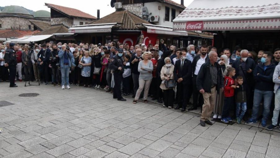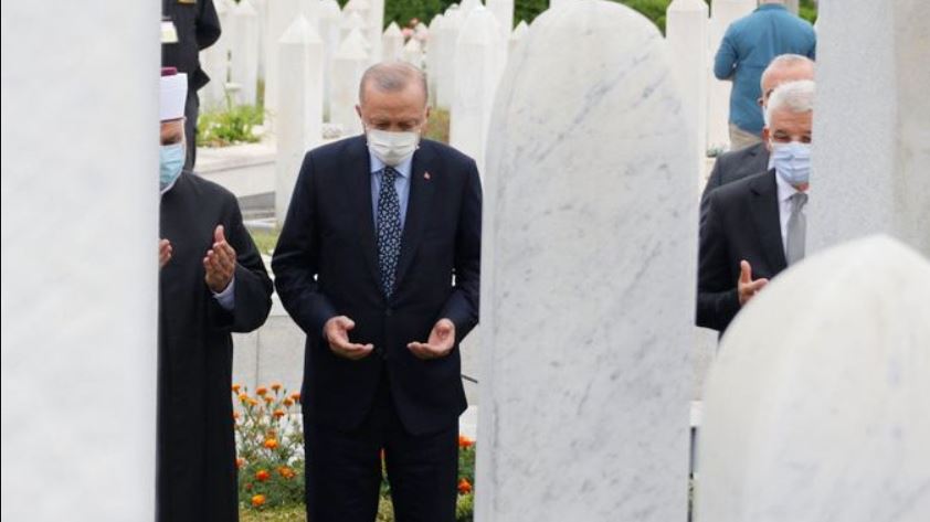 Ο Ερντογάν περπάτησε από το νεκροταφείο στο Κοβάτσι, όπου απέτισε φόρο τιμής στον Αλία Ιζετμπέγκοβιτς, στο τζαμί Μπαγκαρτσίγια, όπου έλαβε χώρα η προσευχή της Παρασκευής.