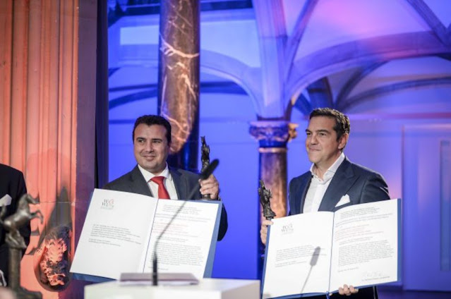 Ο πρώην πρωθυπουργός της Ελλάδας, Αλέξης Τσίπρας, δήλωσε στην ομιλία του ότι το Διεθνές Βραβείο Ειρήνης της Βεστφαλίας, το οποίο μοιράζεται φέτος με τον Πρωθυπουργό Ζάεφ, είναι ένα βραβείο για τους πολίτες των δύο χωρών που συνεργάζονται και επενδύουν από κοινού στο μέλλον και των δύο χωρών και την περιοχή.