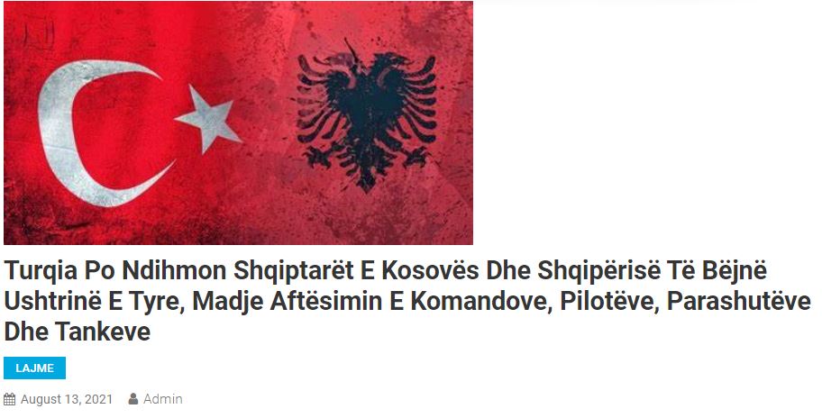 Έτσι, η εκπαίδευση των πιλότων για αεροσκάφη  καθώς και  για άρματα μάχης, αλεξιπτωτιστές, κομάντος και άλλα προφίλ, είναι μερικές μόνο από τις τουρκικές δραστηριότητες βοήθειας που κάνουν προς τους Αλβανούς του Κοσσυφοπεδίου.