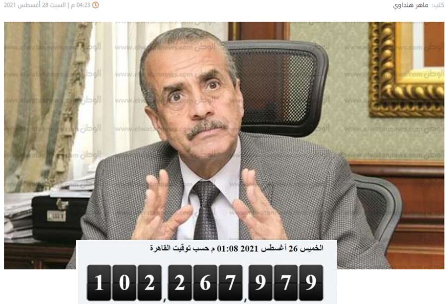 «Η εφημερίδα ‘Πατρίδα’ [Al-Watan] παρακολούθησε τις τελευταίες στατιστικές των περιφερειών της Δημοκρατίας, οι οποίες ανακοινώθηκαν από το «Λαϊκό Ρολόι» της Κεντρικής Υπηρεσίας Δημοσίων Στατιστικών και Καταμέτρησης, η οποία ανακοινώνει ηλεκτρονικά τον πληθυσμό σε πραγματικό χρόνο, καθώς συνδέεται ηλεκτρονικά με το «δίκτυο αράχνης» σε όλα ιατρεία σε όλες τις επαρχίες.