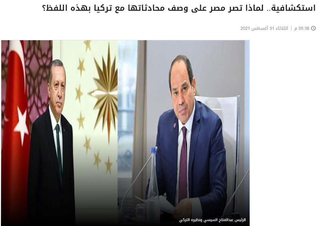 «Η αιγυπτιακή πλευρά παρουσίασε αρκετούς όρους που σχετίζονται με τις σχέσεις μεταξύ των δύο χωρών, εκ των οποίων οι πρώτοι είναι η τουρκική επέμβαση στις αιγυπτιακές υποθέσεις και ορισμένες από τις παρεμβάσεις της στις περιφερειακές υποθέσεις, τις οποίες η Τουρκία απέρριψε και ανακοίνωσε ότι είναι πρόθυμη να κάνει μόνο παραχωρήσεις.
