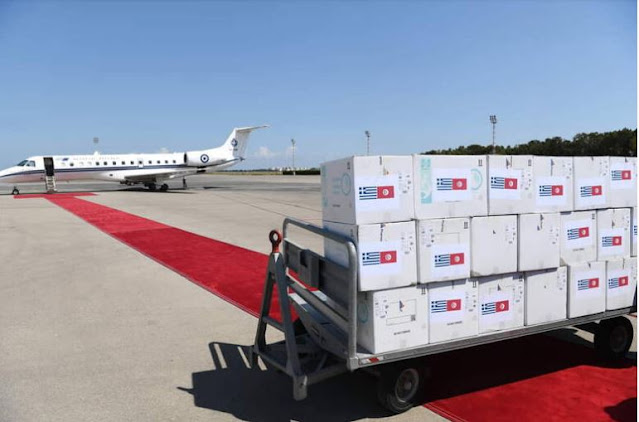 Σήμερα το πρωί, Τρίτη, η Τυνησία έλαβε 100.000 δόσεις εμβολιασμού κατά του ιού Covid-19, τις οποίες η Ελλάδα πρόσφερε για να υποστηρίξει τις προσπάθειές της για την αντιμετώπιση αυτής της πανδημίας, σύμφωνα με όσα ανακοίνωσε η Προεδρία της Δημοκρατίας.